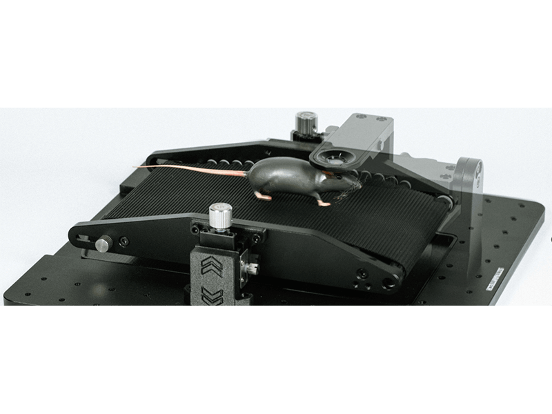 - Midline Fixation: Allows adjustment of the head holder's tilt angle for observing peripheral brain regions. The treadmill can be synchronously tilted to ensure the mouse moves freely in a comfortable posture.